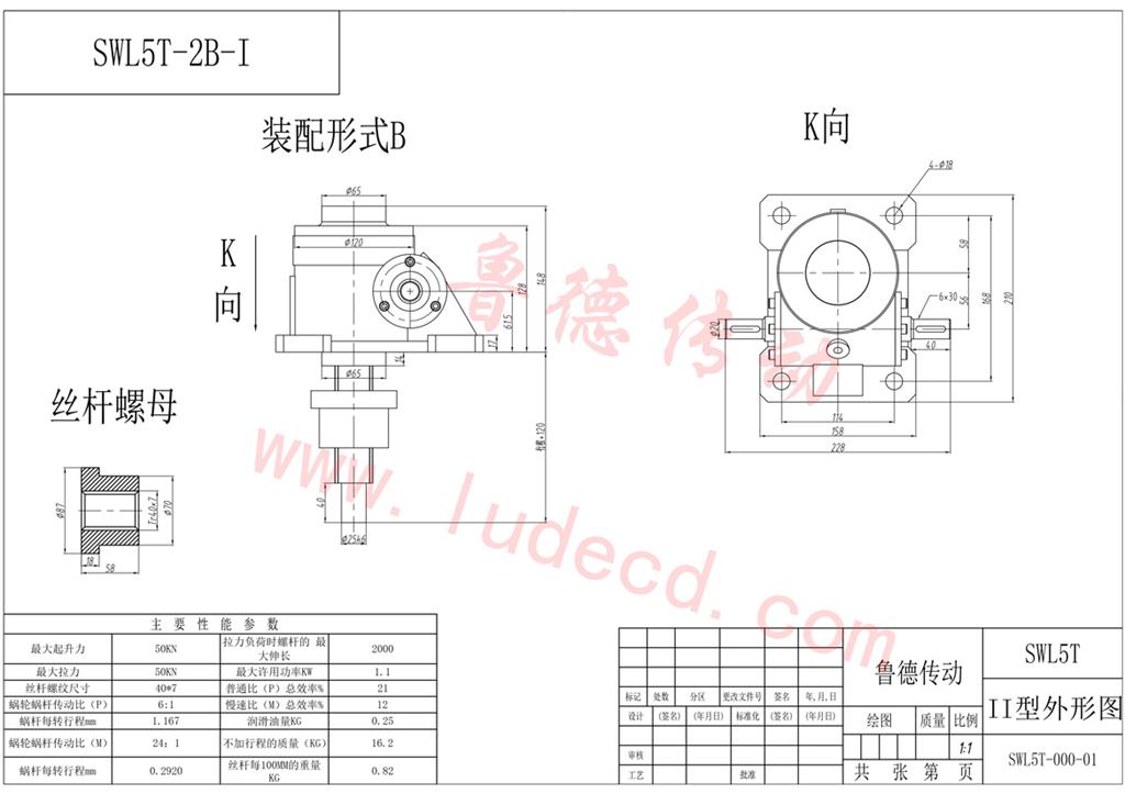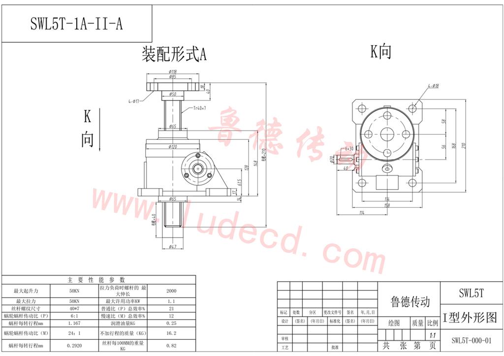 絲桿升降機(jī)-SWL5蝸輪絲桿升降機(jī)圖紙-魯?shù)聜鲃?dòng)