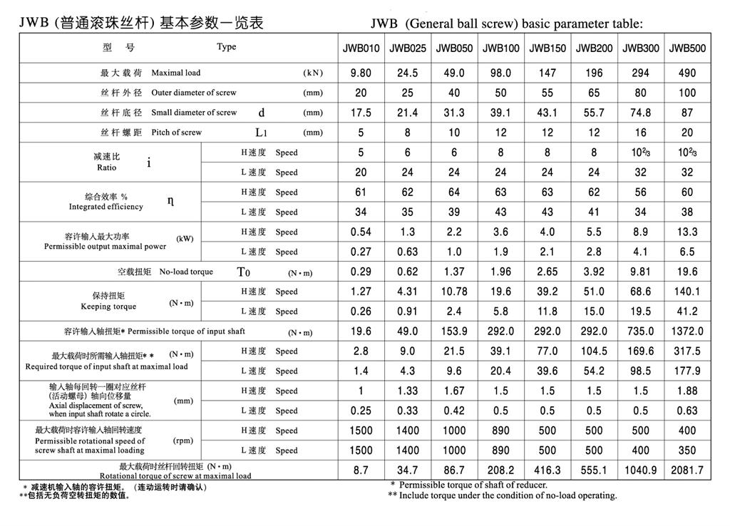 9、JWM型理論上具有自鎖功能,但在工作時如果遇到較大的振動則會導(dǎo)致自鎖功能失靈,這時應(yīng)選擇帶有制動的驅(qū)動源。JWB型升降機本身不具有自鎖功能,為了防止由于軸向載荷和絲桿的自重而產(chǎn)生逆轉(zhuǎn),_外加制動裝置或選擇帶有制動的驅(qū)動源,同時并確保制動扭矩大于保持扭矩。