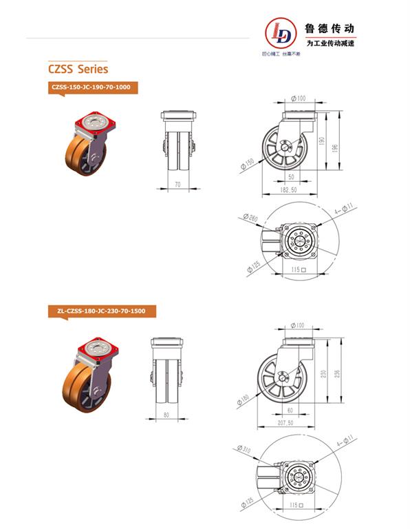 CZSS輪芯采用精密鑄鐵或精密壓鑄鋁合金成型,回轉(zhuǎn)機(jī)構(gòu)采用專(zhuān) 業(yè)設(shè)計(jì)的非標(biāo)滾珠軸承,經(jīng)特殊工業(yè)制造,已達(dá)到轉(zhuǎn)動(dòng)靈活、抗沖擊、耐疲勞的作用。輪面采用化學(xué)反應(yīng)澆鑄的優(yōu) 質(zhì)進(jìn)口聚氨酯彈性體,行走噪音低、無(wú)壓痕、保護(hù)地面、耐磨、抗切割。