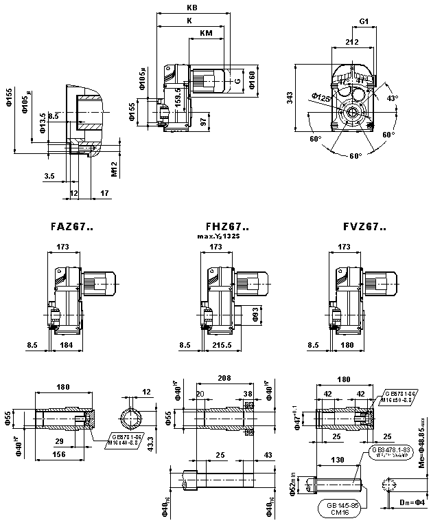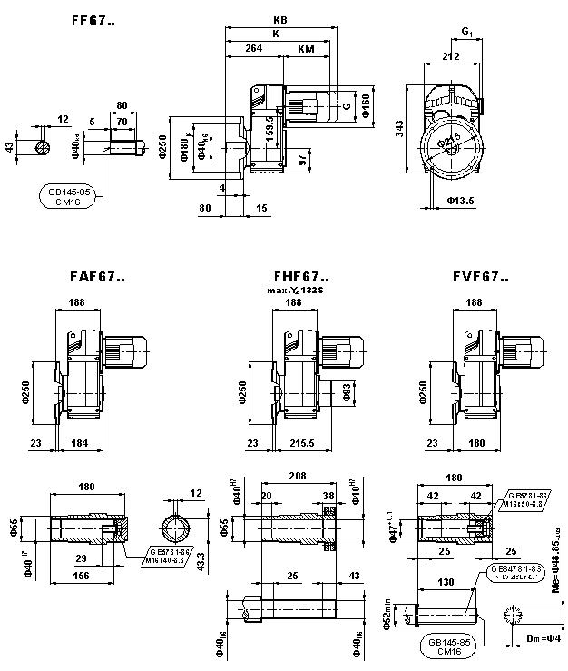 外形安裝尺寸(F67、FA67B、FH67B、FV67B、FF67、FAF67B、FHF67B、FVF67B、F..67/G、FA67、FH67、FV67、FAZ67、FHZ67、HVZ67)