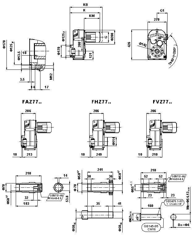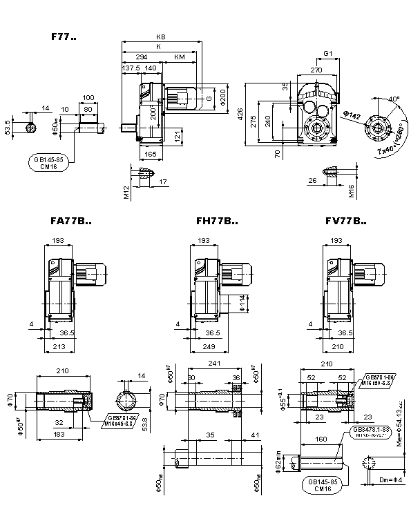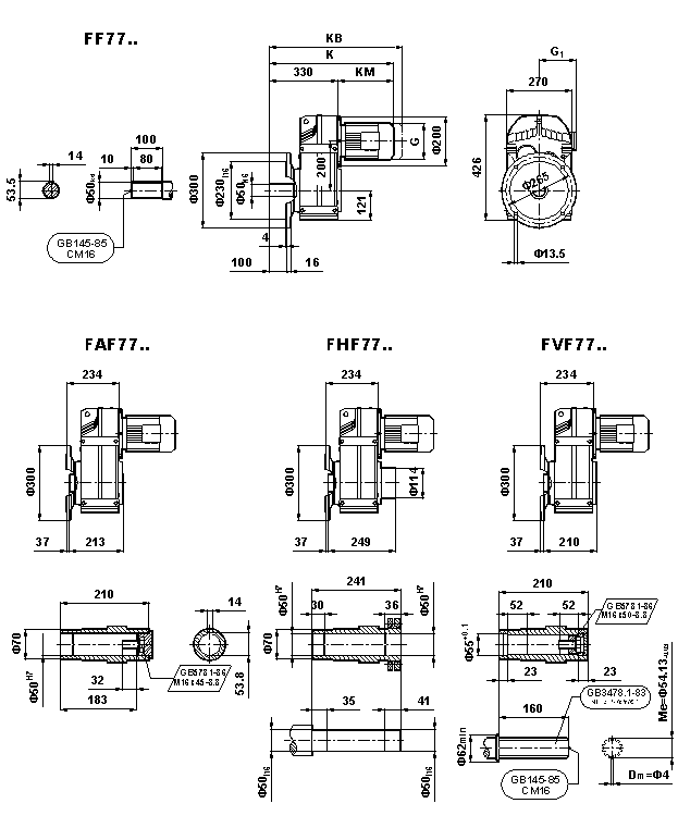 外形安裝尺寸(F77、FA77B、FH77B、FV77B、FF77、FAF77B、FHF77B、FVF77B、F..77/G、FA77、FH77、FV77、FAZ77、FHZ77、HVZ77)