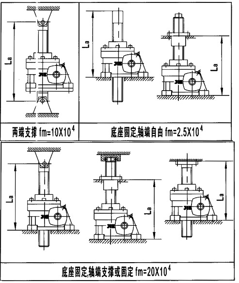 n1--輸入軸回轉(zhuǎn)轉(zhuǎn)速(r/min) fn--支撐系數(shù)(詳見附表6) Lb--支撐間距離(mm)