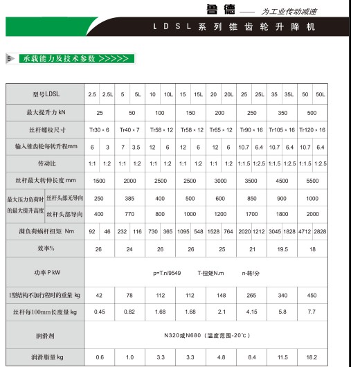 LDSL錐齒輪絲桿升降機(jī)技術(shù)參數(shù)