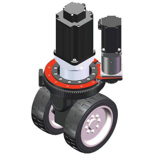 立式舵輪含驅(qū)動(dòng)機(jī)構(gòu)及速度反饋、轉(zhuǎn)向機(jī)構(gòu)及其位置反饋、限位裝置、制動(dòng)機(jī)構(gòu)等,高度集成的機(jī)電一體化產(chǎn)品。通過(guò)驅(qū)動(dòng)控制,可以精 確控制舵輪的行走速度和方向。立式舵輪適用于室外應(yīng)用,其機(jī)構(gòu)特性可實(shí)現(xiàn)涉水行走,且具備優(yōu) 秀的通過(guò)性和爬坡越障能力。