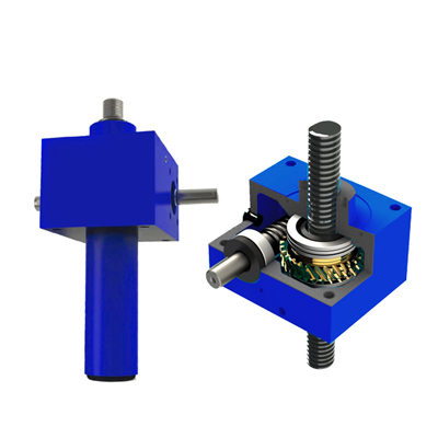 S型螺旋升降機的原理為蝸桿驅動蝸輪旋轉,蝸輪中間為內(nèi)螺紋孔機構(與絲杠相嚙合),再將旋轉運動傳遞至絲杠上下直線運動。