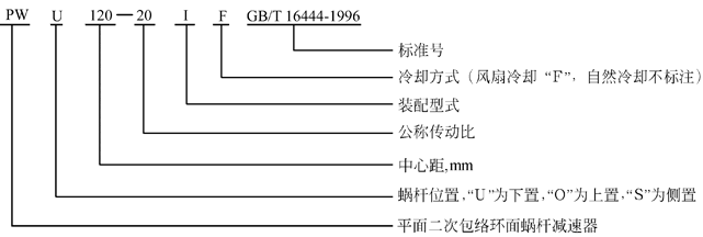 PW型平面二次包絡(luò)環(huán)面蝸桿減速機型號與標記(GB/T16449-1996)