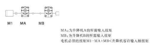 (3)當(dāng)升降機(jī)傳動配置為串聯(lián)時(shí)(即同一軸線配置了兩個或以上數(shù)量的升降機(jī))如圖須對各