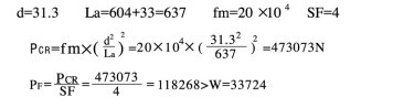 ⑤絲桿穩(wěn)定性校核:以為施加壓縮載荷,所以按照絲桿穩(wěn)定性校驗計算公式進行校核,在根據(jù)JWB050US尺寸圖得出L=637取安全系數(shù)=4