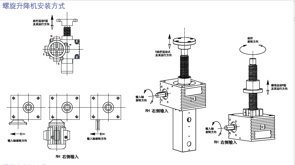 S型螺旋升降機的原理為蝸桿驅(qū)動蝸輪旋轉(zhuǎn),蝸輪中間為內(nèi)螺紋孔機構(gòu)(與絲杠相嚙合),再將旋轉(zhuǎn)運動傳遞至絲杠上下直線運動。