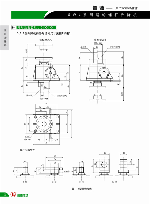 SWL蝸輪絲桿升降機(jī)的裝配型式及外形結(jié)構(gòu)尺寸