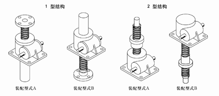 1型結(jié)構(gòu)型式的兩種裝配型式:A型:螺桿工作端在上;B型:螺桿工作端在下。