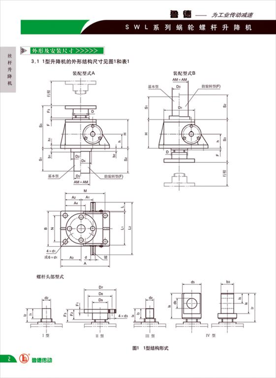 1型結(jié)構(gòu)形式的絲桿頭部分為I型(圓柱型)、II型(法蘭型)、III型(螺紋型)型、IV(扁頭型)四種形式;