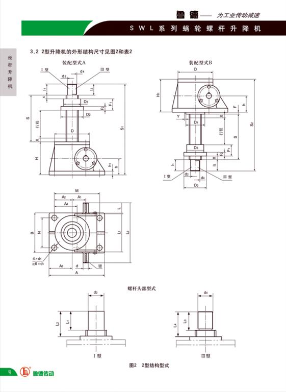 2型結(jié)構(gòu)型式分為:A型:螺桿工作端在上,螺母上頂或下拉;B型:螺桿工作端在下,螺母下壓或上拉。