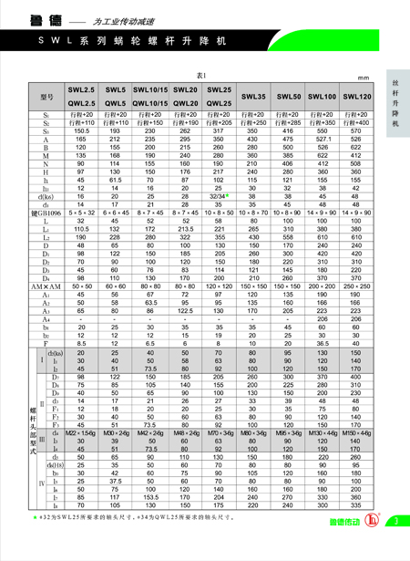 SWL系列蝸輪螺桿升降機(jī),蝸輪絲桿升降機(jī)有不同的結(jié)構(gòu)型式和裝配方式,提升高度可按要求加工制造。請(qǐng)根據(jù)實(shí)際使用負(fù)荷、螺桿行程和起升速度選擇合適的絲桿升降機(jī)。