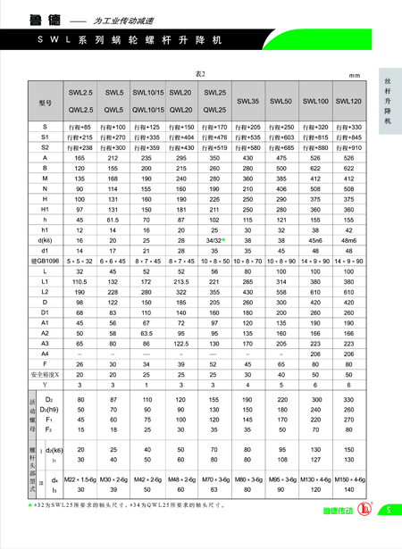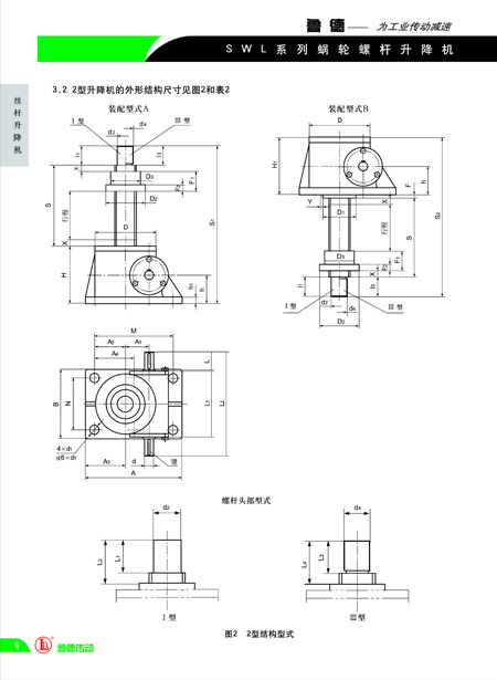 SWL系列蝸輪螺桿升降機(jī)有不同的結(jié)構(gòu)型式和裝配方式,提升高度可按要求加工制造。請(qǐng)根據(jù)實(shí)際使用負(fù)荷、螺桿行程和起升速度選擇合適的