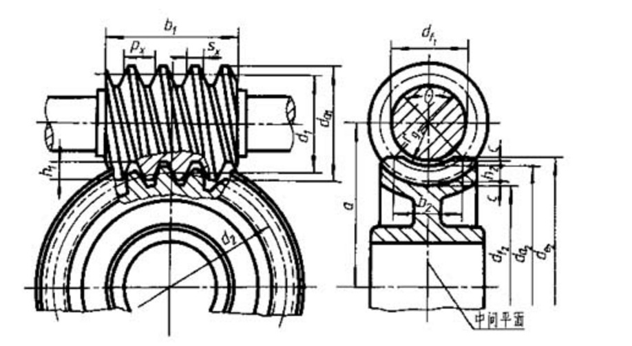 蝸輪蝸桿傳動_常用的蝸桿為圓柱型阿基米德蝸桿,這種蝸桿的軸向齒廓是直線軸向斷面呈等腰梯形與梯形螺紋相似。蝸桿的齒數(shù)稱為頭數(shù)相當于螺紋的線數(shù)常用單頭或雙頭。一般情況下蝸桿為主動軸,材料是密度大的合金鋼不易磨損,蝸輪為從動軸材料為青銅。