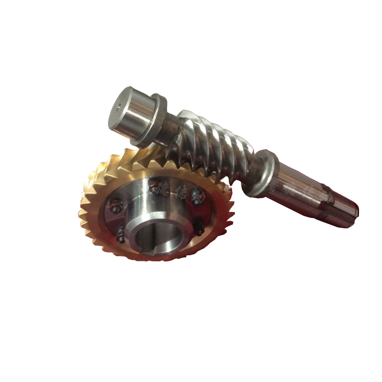 蝸輪蝸桿齒形有阿基米德、漸開線、二次包絡(luò)等多種。根據(jù)不同的使用要求,蝸輪齒圈的常用材料是鑄造青銅,通常還要添加一些合金元素,以改良其性能,根據(jù)所加入的合金元素的種類和含量的不同,可將鑄造青銅細(xì)分為錫青銅、錫鋅青銅、錫鎳青銅、鋁鐵青銅及鋁鐵鎳青銅等;有些場(chǎng)合,也選用鑄鐵來制作蝸輪齒圈,主要有灰鑄鐵和球墨鑄鐵。目前,鑄造錫青銅是比較理想的蝸輪材料,既易于磨合、承載能力又高;鑄造鋁鐵青銅適用于重載與低滑動(dòng)速度(1,。≤4m/S)場(chǎng)合;灰鑄鐵由于硬度較高(滑動(dòng)磨損少),只能用于低速、效率要求不高的場(chǎng)合;球墨鑄鐵蝸輪與淬硬蝸桿配合,適用于低滑動(dòng)速度重載場(chǎng)合。
