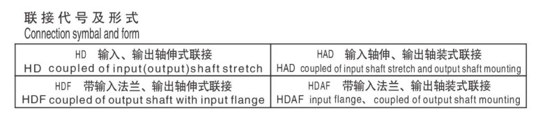 型號有HD09、HD11、HD14、HD17、HD21、HD24、HD28七種規(guī)格,選型范圍大,輸出軸型式多樣,可滿足多種場合的需要。