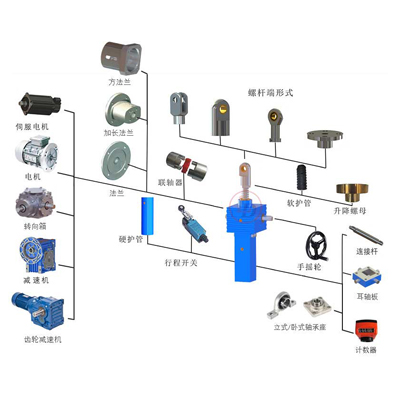 可以直接與電機(jī)、減速電機(jī)、特殊功能附件的任意組合,一體化設(shè)計(jì),為客戶提供上千種的選擇。可以按照客戶要求非標(biāo)設(shè)計(jì),可裝配防塵罩,反齒隙設(shè)計(jì),安全螺母,滾珠絲杠,限位開關(guān),過載離合器,電位計(jì),編碼器,制動(dòng)器,手搖把,安裝附件等。