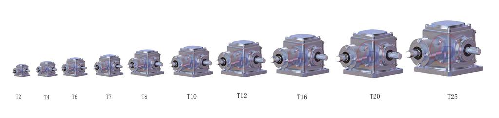 錐齒輪轉(zhuǎn)向箱,T系列螺旋錐齒輪傳動箱,標準化,多品種,速比1:1、1.5:1、2:1、2.5:1、3:1、4:1、5:1全部為實際傳動比。平均效率98%。有單軸、雙黃軸、單縱軸、雙縱軸可選。螺旋錐齒輪可以正反運轉(zhuǎn),低速或高速傳動平穩(wěn),而且噪音低,振動小,承受力大。