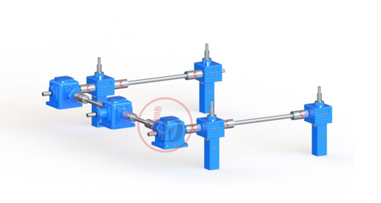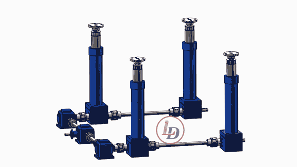 絲桿升降機(jī)工作平臺(tái)四臺(tái)(包含四臺(tái))以下的聯(lián)動(dòng)方案,建議盡量采用一臺(tái)電機(jī)來(lái)完成,因?yàn)殡姍C(jī)每分鐘的轉(zhuǎn)速都有速差,如果采用多臺(tái)驅(qū)動(dòng)很難達(dá)到同步穩(wěn)定的效果。